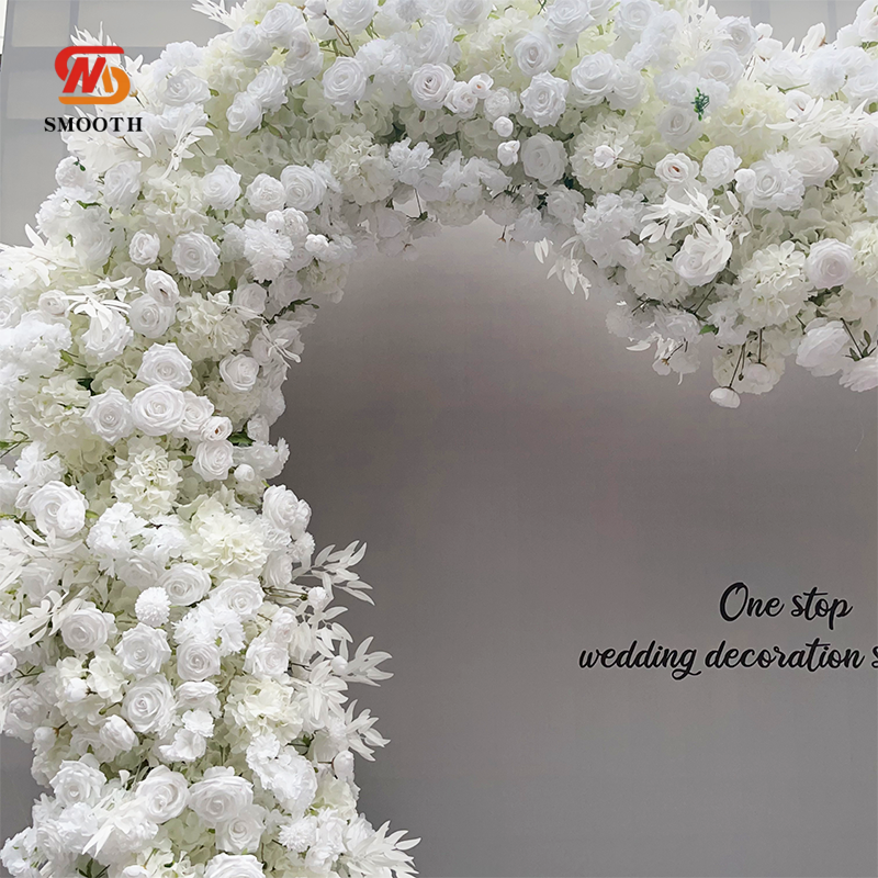 SMOOTH Factory Handmade White Rose Floral Row Heart Shape Horn Arch Soft Wedding Event Stage Decoration for Valentine's Day