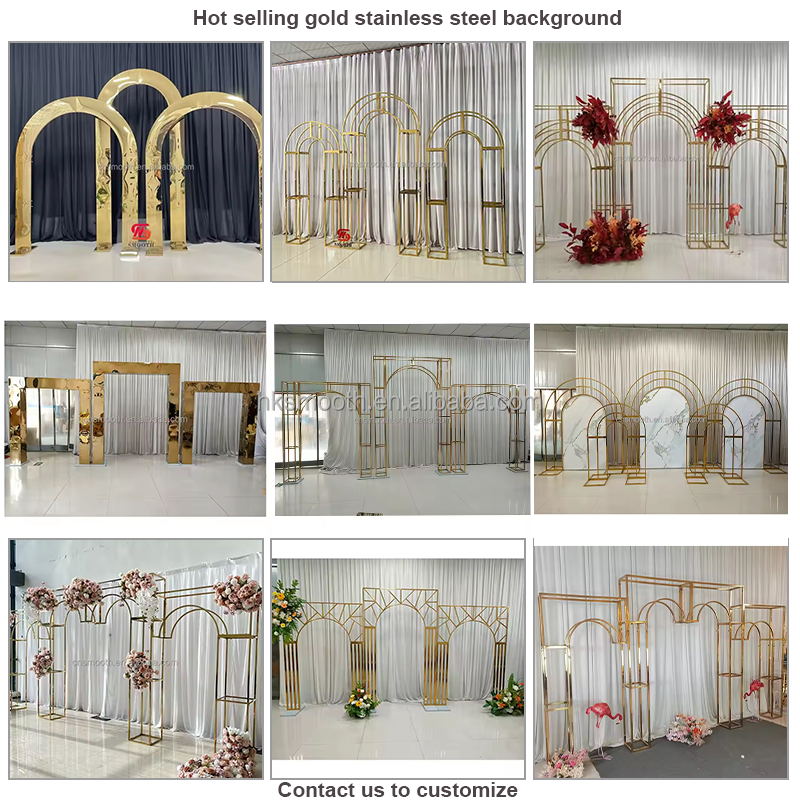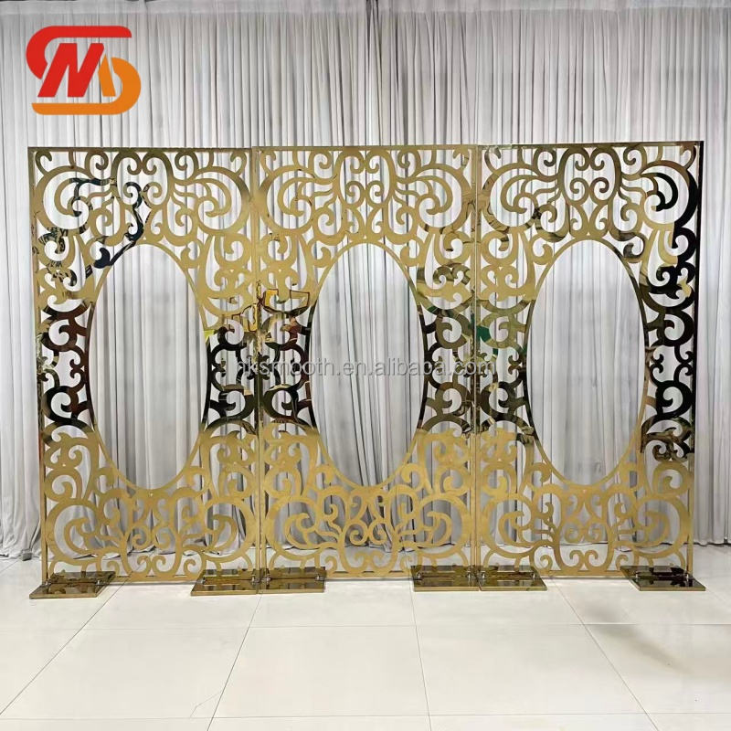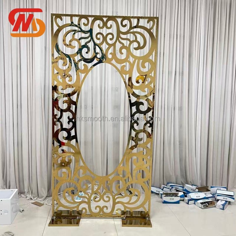 SMOOTH Factory Metal Background Pattern Panel Frame Arch Gold Backdrop for Wedding Decoration Party Scene