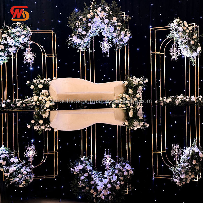 SMOOTH Glossy Gold Metal French Stainless Steel 3 Panel Arch Style Mirror Design Wedding Backdrop Stand with Led Light