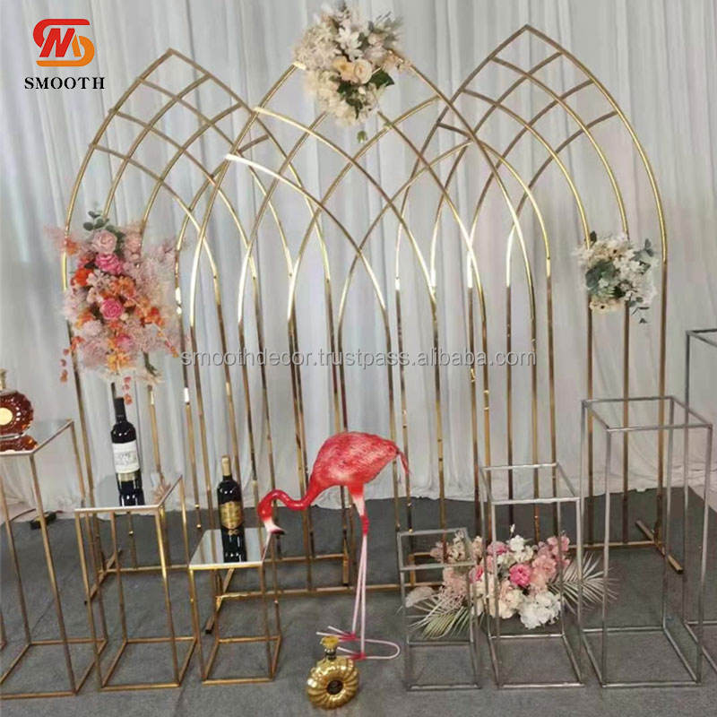 SMOOTH Gold Geometric Rectangular Stainless Steel Wedding Backdrop with Mirror Design for Wedding Event Party