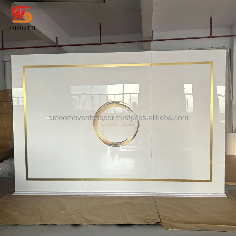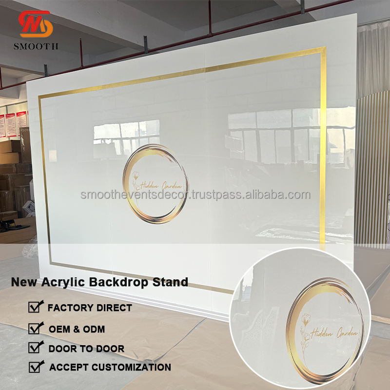 SMOOTH Gold Rim Rectangle Acrylic Arch White Acrylic Backdrop Panel Stand For Wedding Stage Events Decor