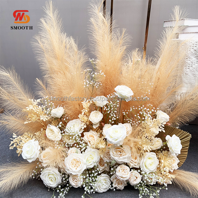 SMOOTH Handmade Silk Artificial Hanging Row Backdrop Arch Rose PAMPAS Valentine's Day Wedding Decor Flowers Runner