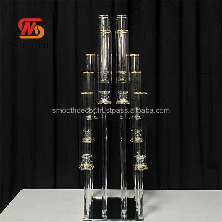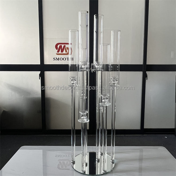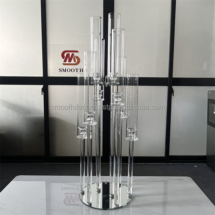 SMOOTH High Quality Glass Candlestick Holder Classic 8 Arms Clear Crystal Candle Holder For Wedding Decoration
