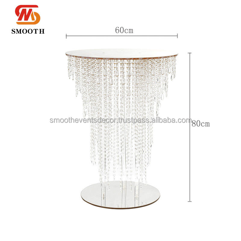 SMOOTH High Quality Mirror Silver Cake Stand With Crystal Beads Flower Stand For Wedding Decoration