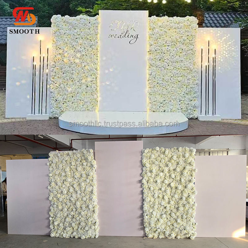 SMOOTH High Quality Wedding Reception Stage Decorative White Acrylic Backdrop With Gold Mirror Edge