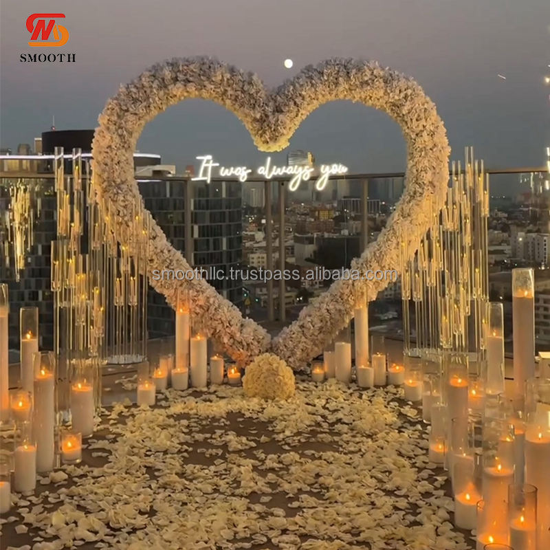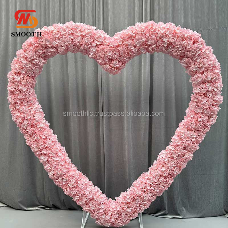 SMOOTH Hot Sales Event Artificial Flower Arch White Hydrangea Heart Flower Arch With Neon Sign for Wedding Arch Home Decoration