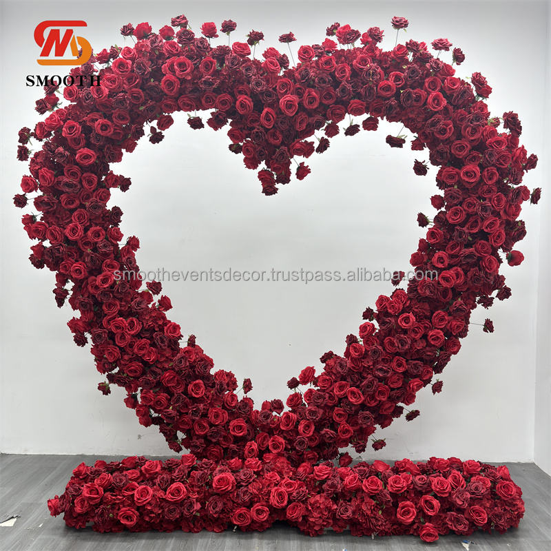 SMOOTH Hot Sell Realistic Romantic Wedding Heart-Shaped Artificial Red Rose Flowers Arch for Wedding Decor