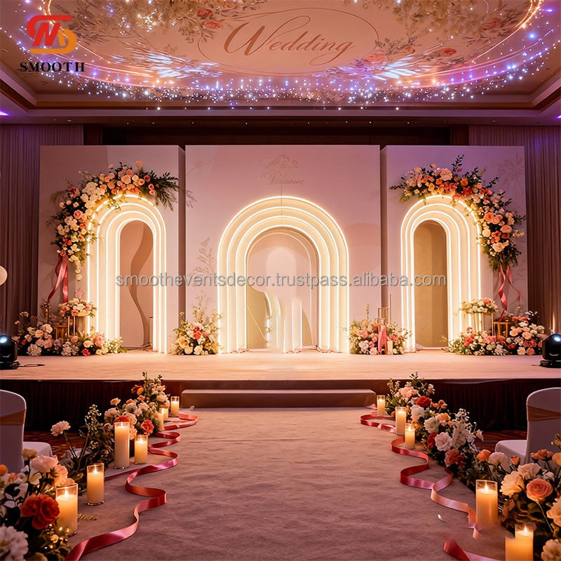 SMOOTH Hot Selling Sets Wedding Stage Backdrop Arch Set 3D Multiple Layers Pvc Arch Stand For Events Decoration