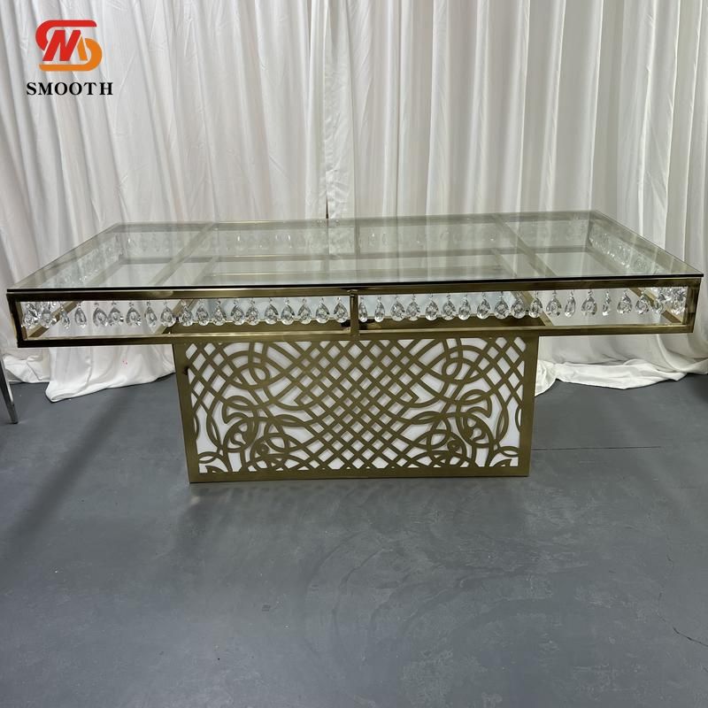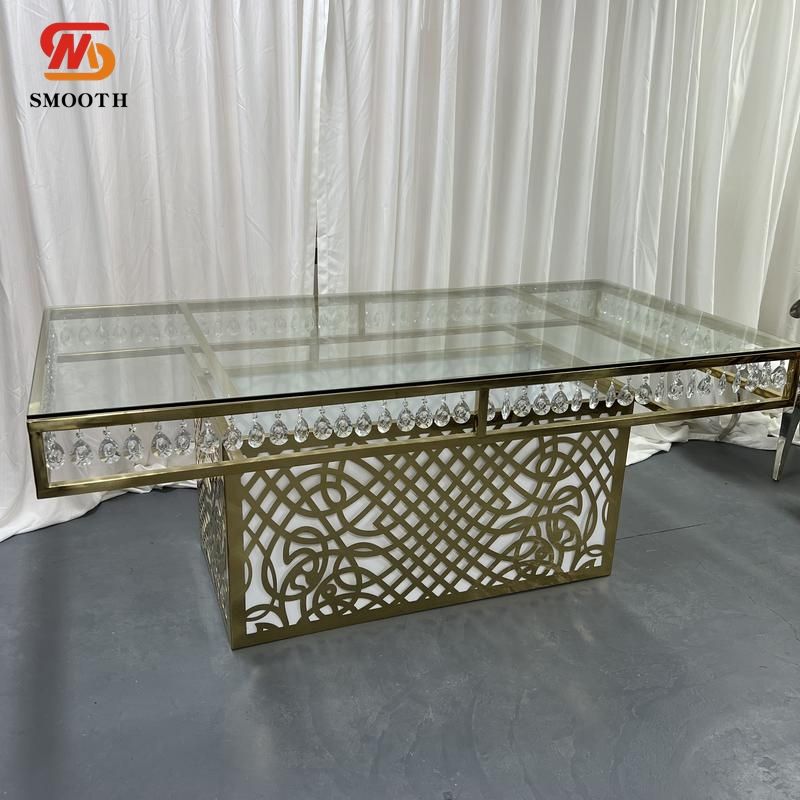SMOOTH Hot Selling Wedding Mirror Glass Rectangular Crystal Gold Stainless Steel Banquet Luxury Glass Table for Event