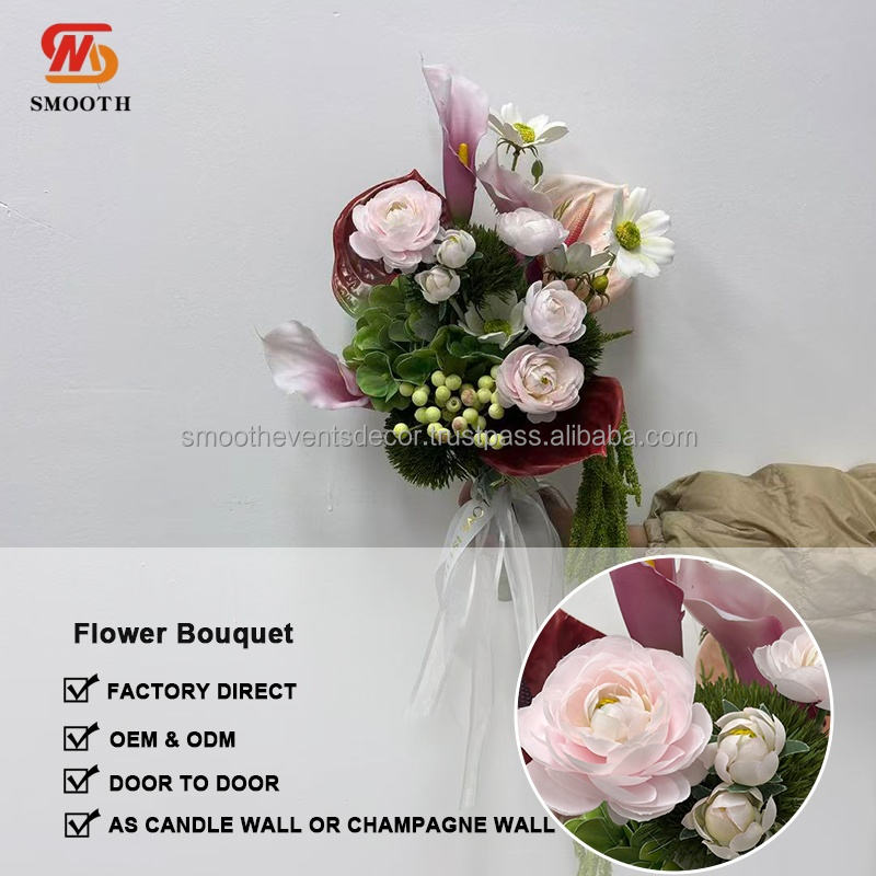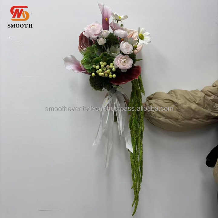 SMOOTH Luxury Green Rose Real Touch Wedding Bride Silk Realistic Bouquet With Hanging Vine
