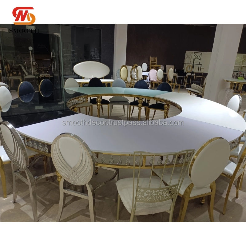 Product Name:Round Gold Glass Top Stainless Steel Wedding Dining Table