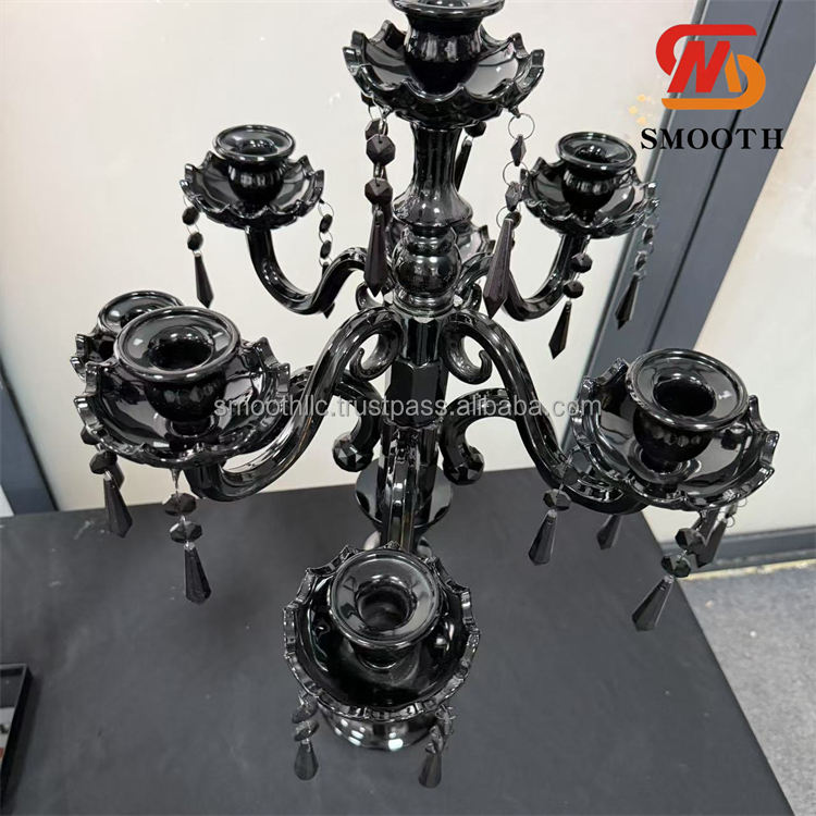 SMOOTH Luxury Wedding Candelabra Centerpieces Black Crystal Glass Candle Holder Stand Candlestick Display
