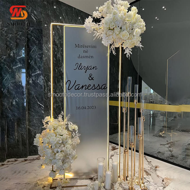 SMOOTH Metal Flower Display Frame Square Wedding Backdrop Stand Gold Wedding Welcome Sign Stand