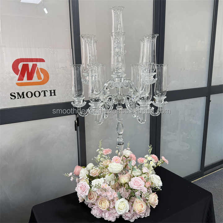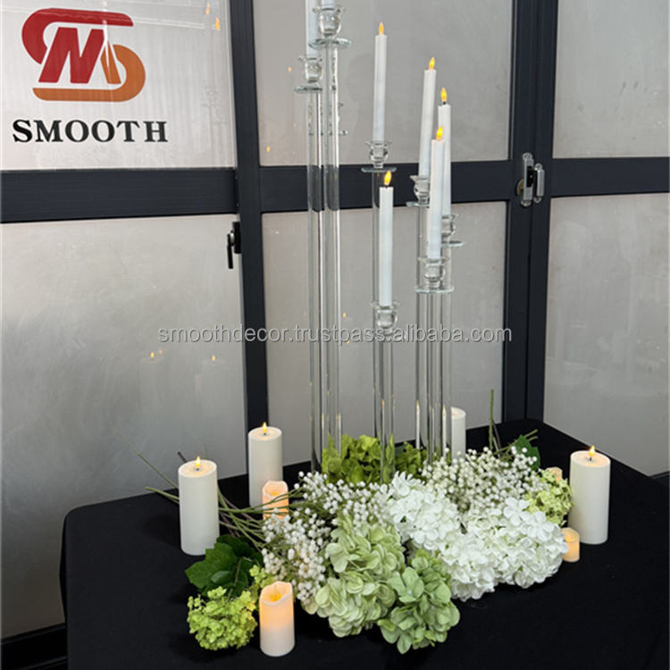 SMOOTH Modern Candle Stand Holder Clear 13-Arm Crystal Candlestick Glass Candle Holder Vintage Candelabra