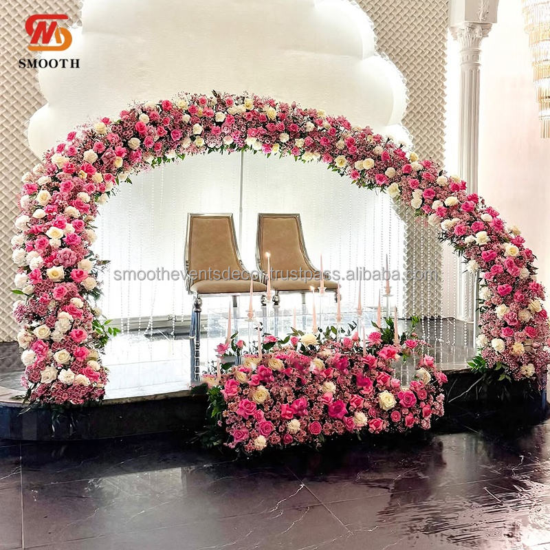 SMOOTH Modern Style White Metal Background Bead Curtain Frame Stand With Flower Decoration Backdrop Set For Wedding