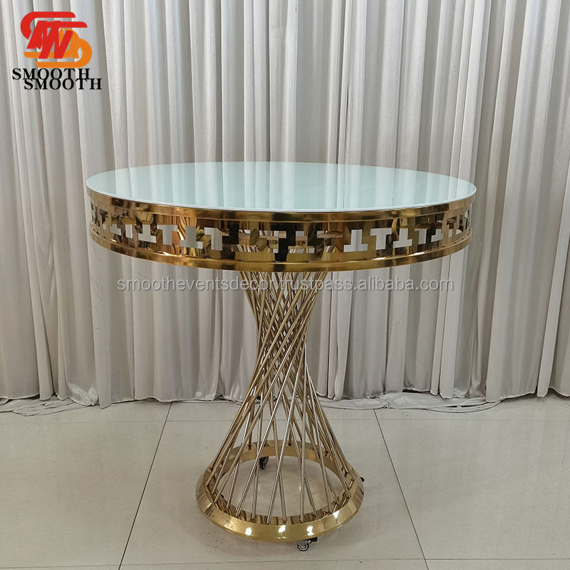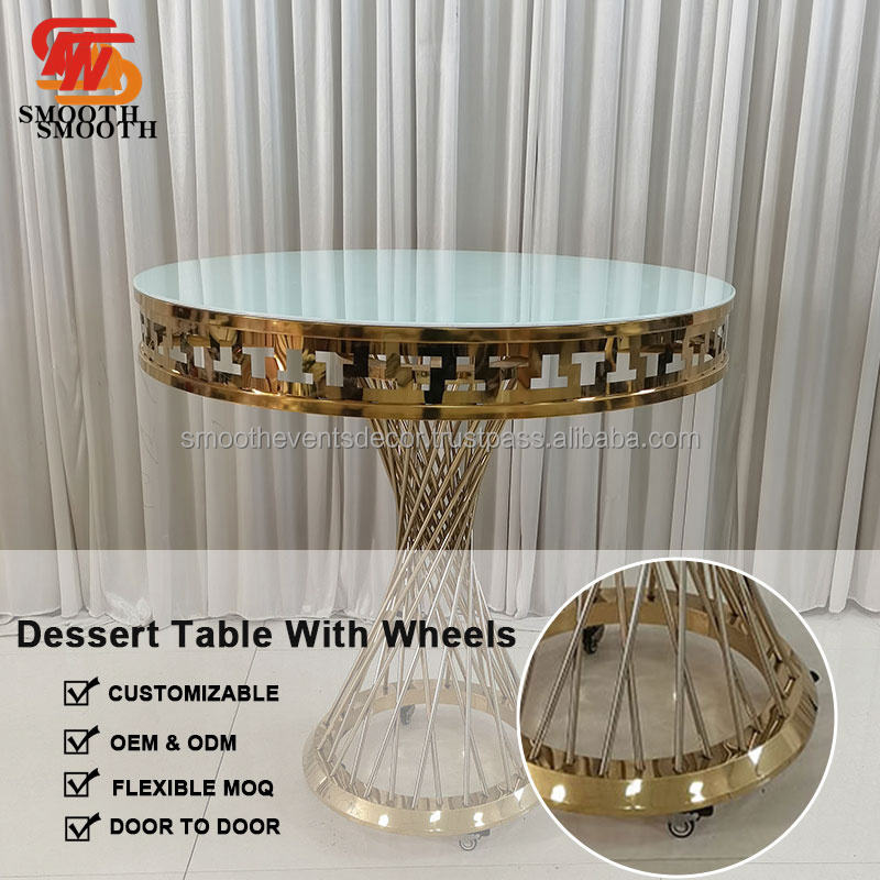 SMOOTH Movable Gold Stainless Steel Cake Plinth With Wheel Cake Display Table Mirror Glass Plinth Stand Wedding Tables