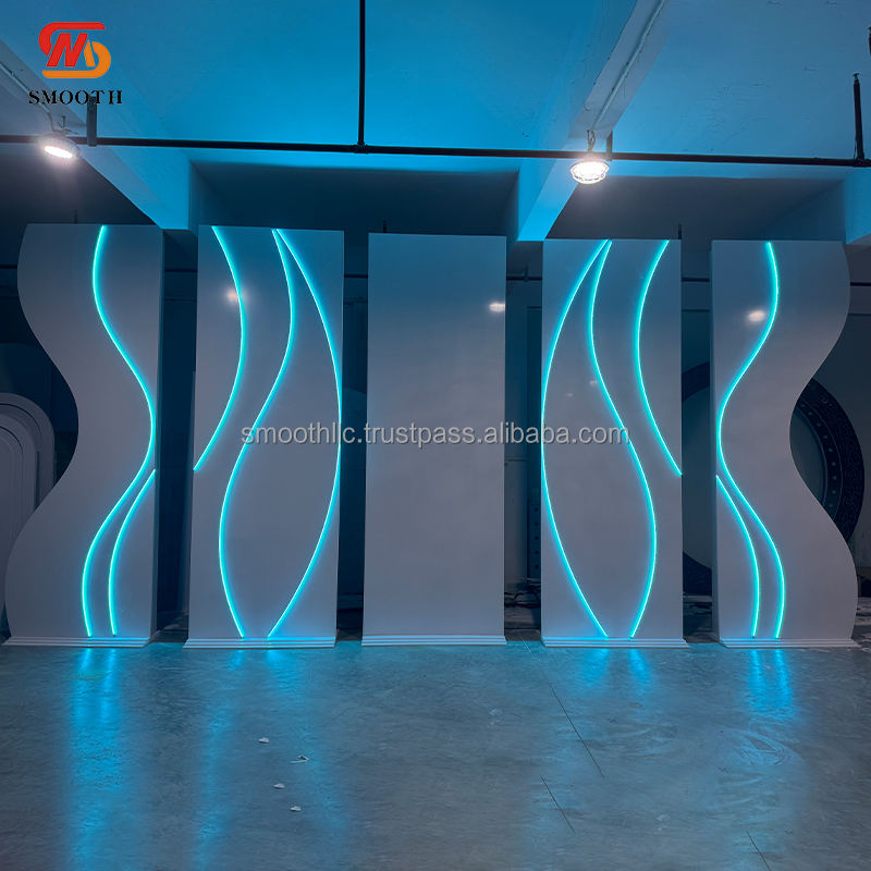 SMOOTH New Acrylic backdrop Set with Blue LED light White PVC Plate With Light For Wedding Stage Decoration