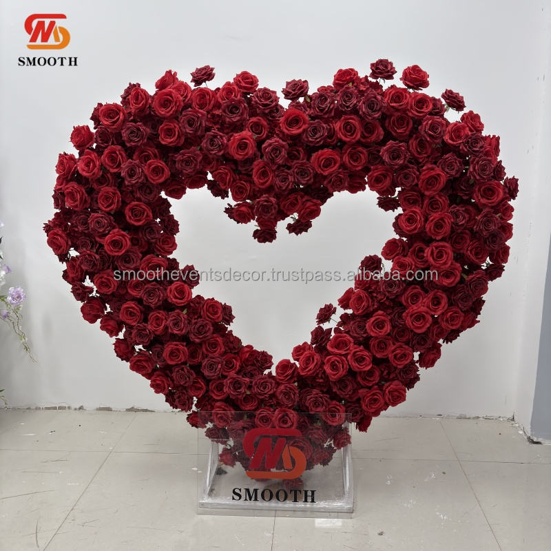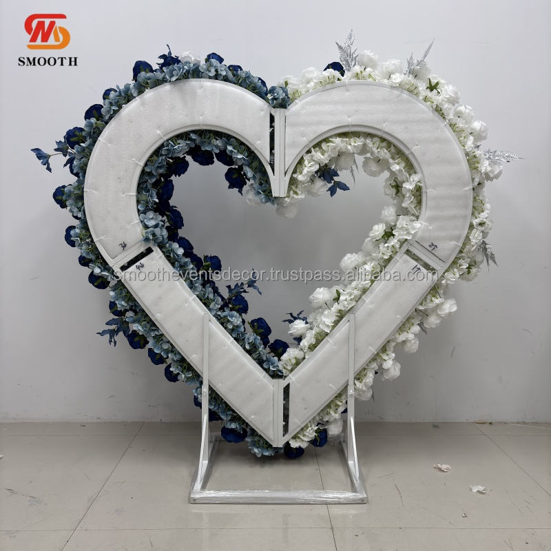 SMOOTH New Arrival Double Color Heart Flower Arch Royal Blue Artificial Flowers 1.5M Heart Flower Arch Stand For Events