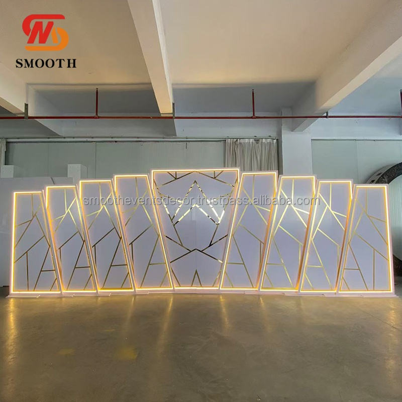 SMOOTH New Arrival Gold Trim LED Light White Pvc Acrylic Panels Backdrop Set For Events Stage Decoration
