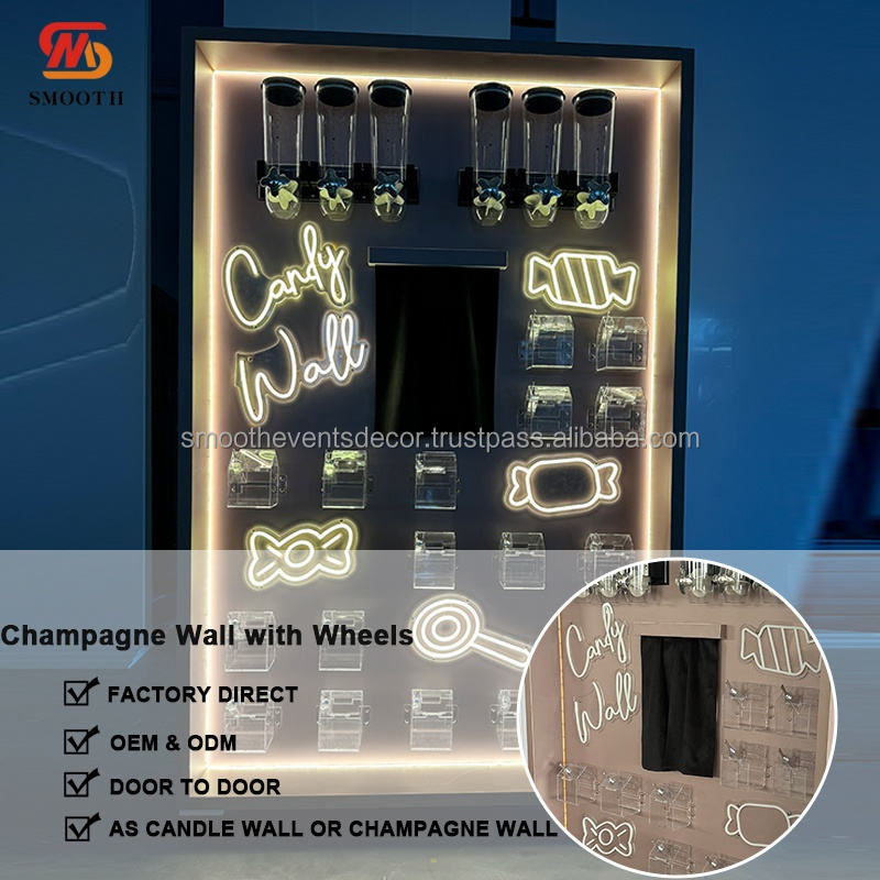 SMOOTH New Arrival Popular Champagne Wall Backdrop Stand With Led Neon Signs For Party Event Usage