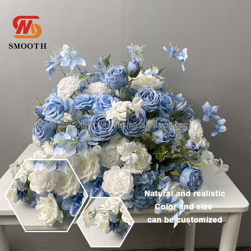 SMOOTH Soft Handmade Silk Flower Bouquet Blue 60cm for Wedding & Valentine's Day Table Centerpiece