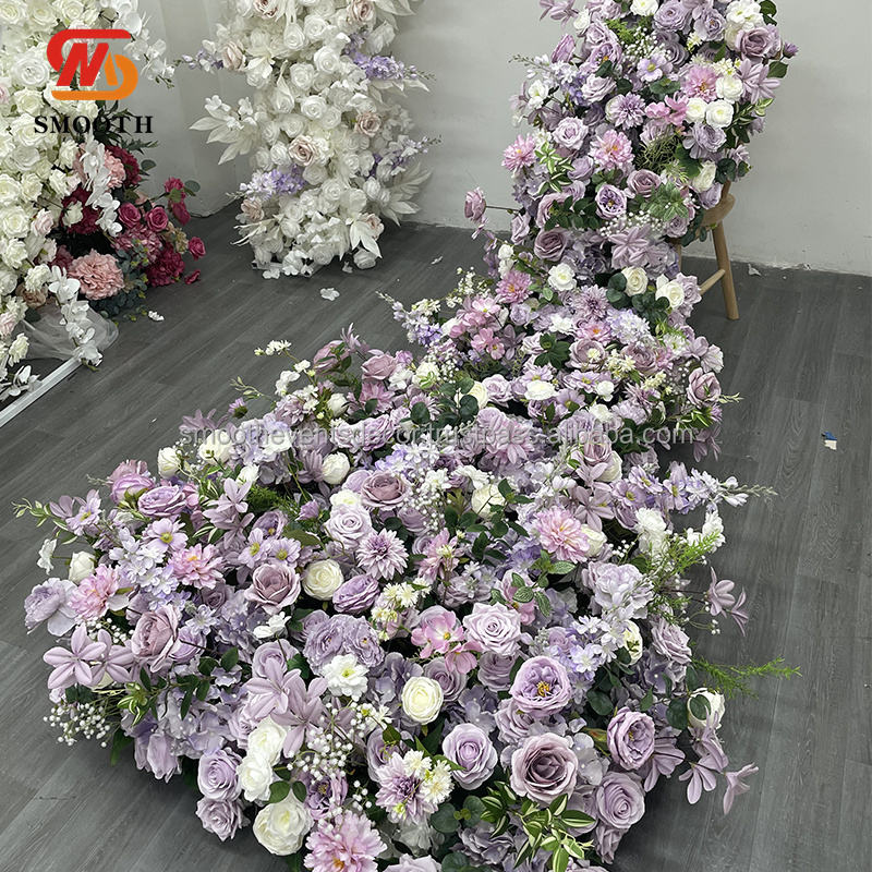 SMOOTH New Design White Artificial Flower Runner Wedding Table Aisle Flower Runner Backdrop for Wedding Decoration