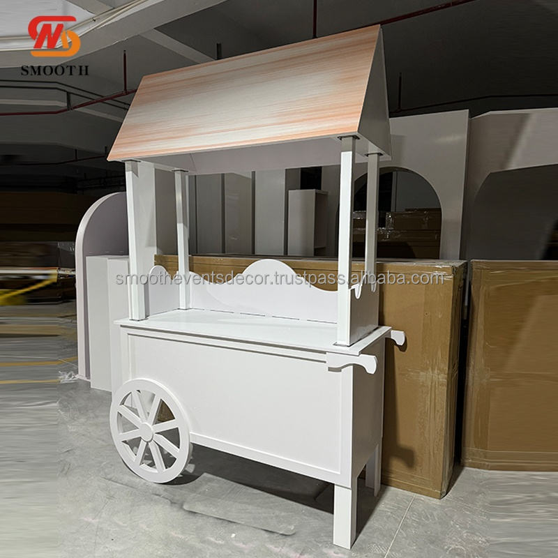 SMOOTH Wedding Candy Desserts Display Cart White PVC Sweet Cart With Wheels For Birthday Party Decoration