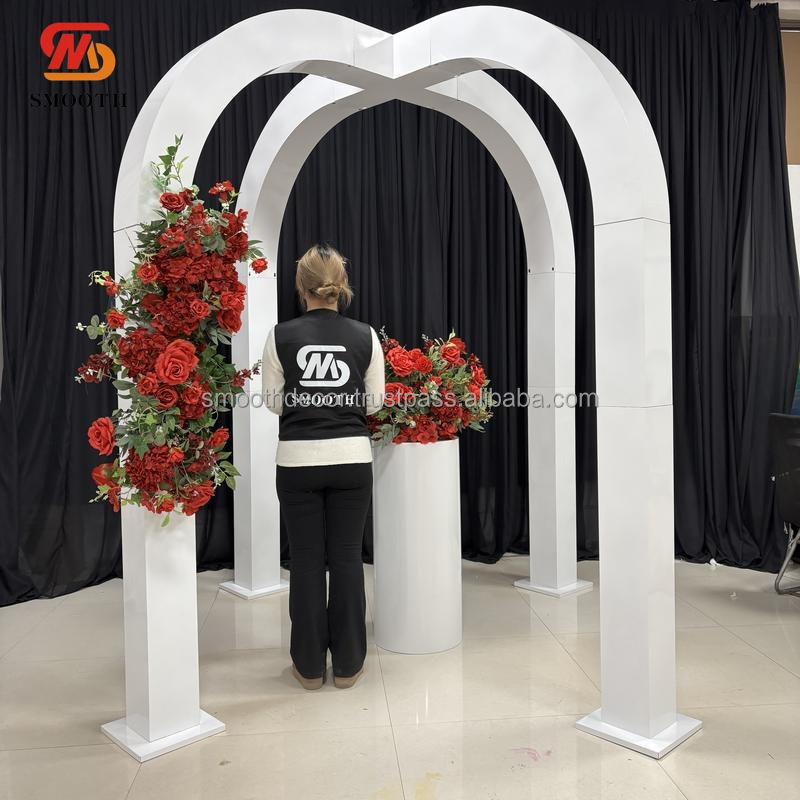 SMOOTH Iron Wedding Arch Stand with Mirror Design White Color Round Shape for Event Backdrop