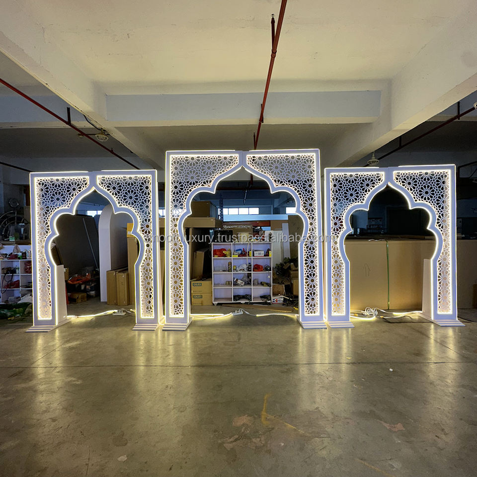 SMOOTH White Carved and Hollowed-out LED Light Acrylic Backdrop Decoration Arch Stand Wedding Lighting Event Backdrop