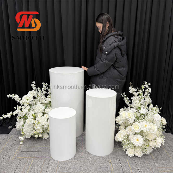 SMOOTH White Ripple Round Cylinder Pedestal Stand Metal Cake Plinths for Wedding Decoration
