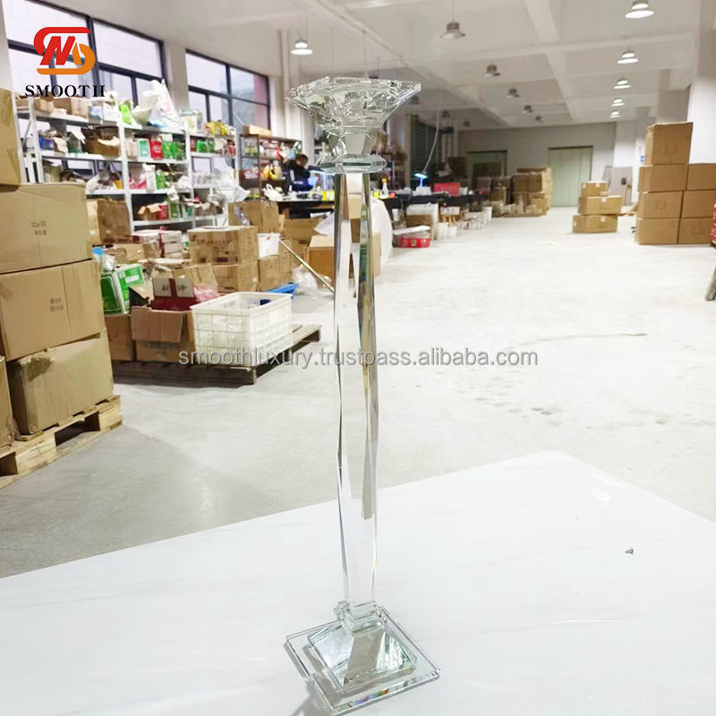 SMOOTH Wholesale Crystal Wedding Party Decoration Transparent Clear Glass Crystal Candle Holder for Wedding Decoration