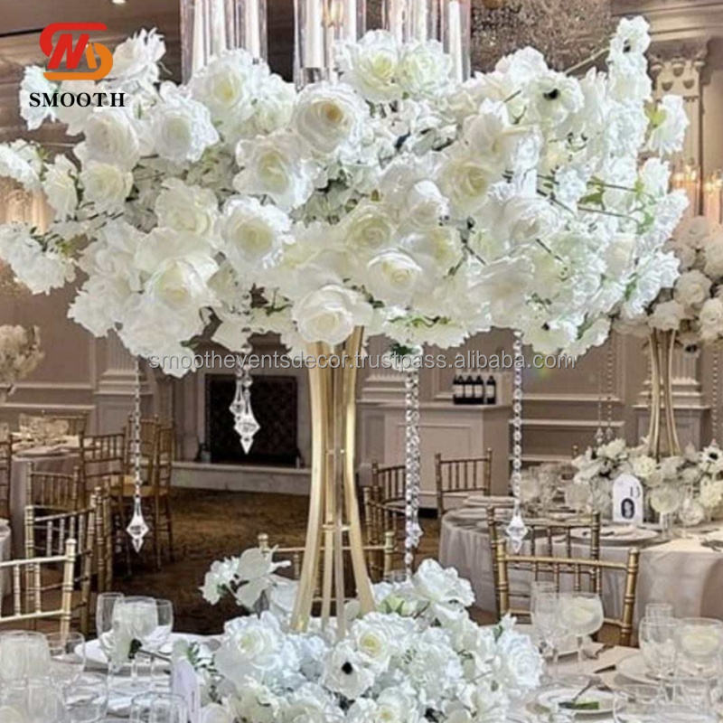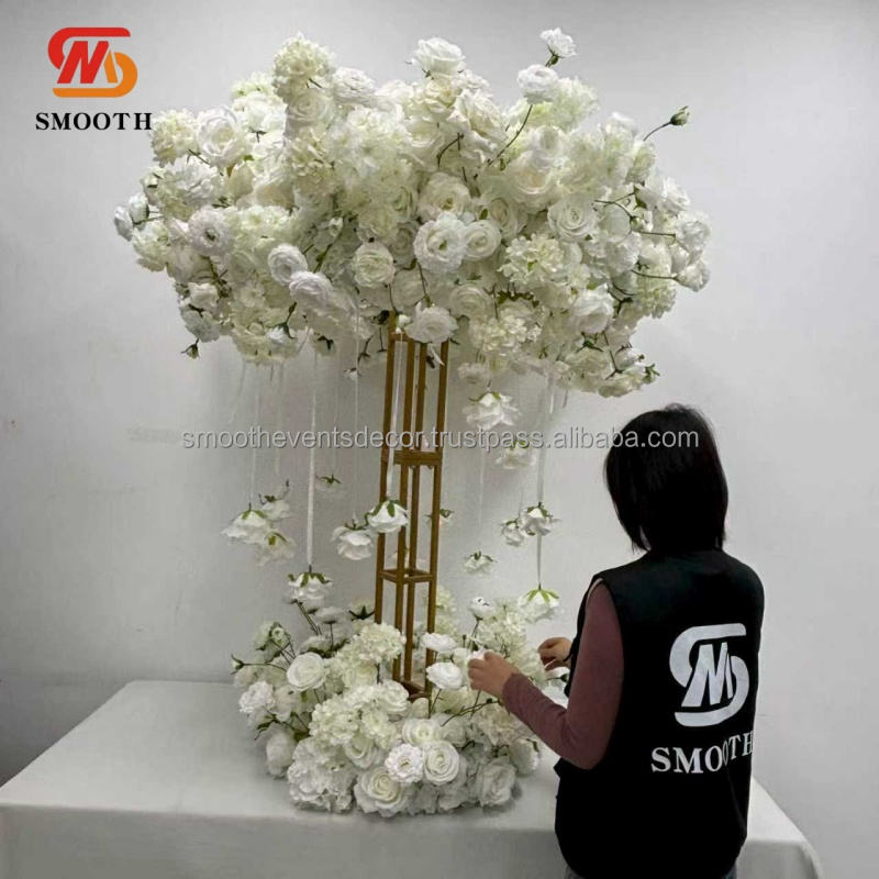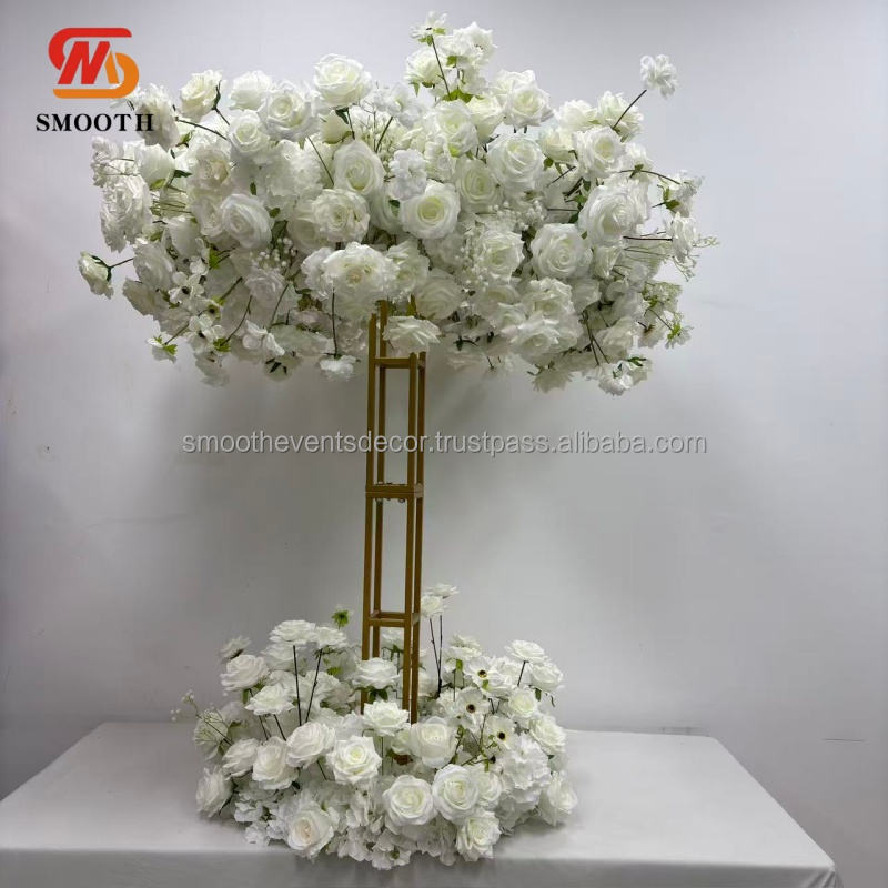 SMOOTH Wholesale Elegant Wedding Artificial Ferris Wheel Silk White Flower Centerpiece With Base Wreath for Wedding