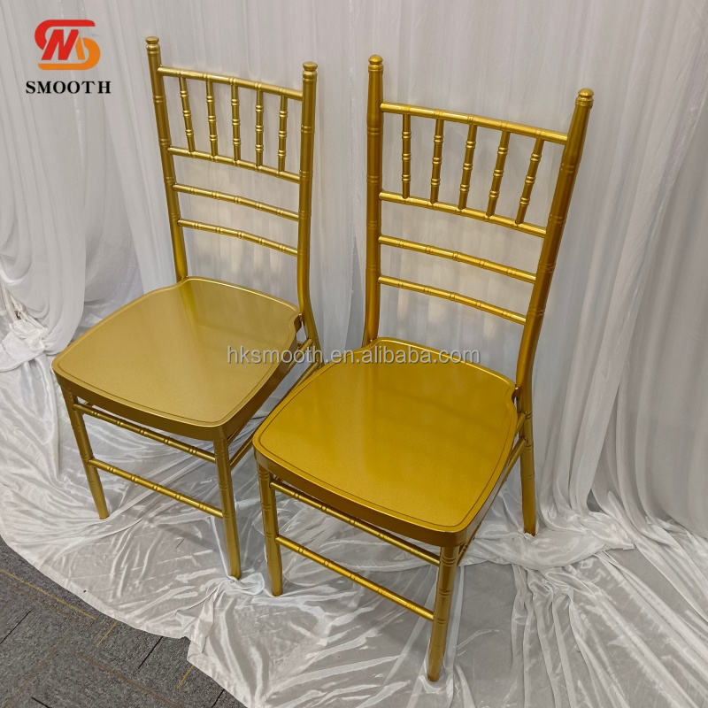 SMOOTH Wholesale Stackable Hotel Banquet Party Events Chair Wedding Tiffany Gold Iron Dinner Chair With Cushions