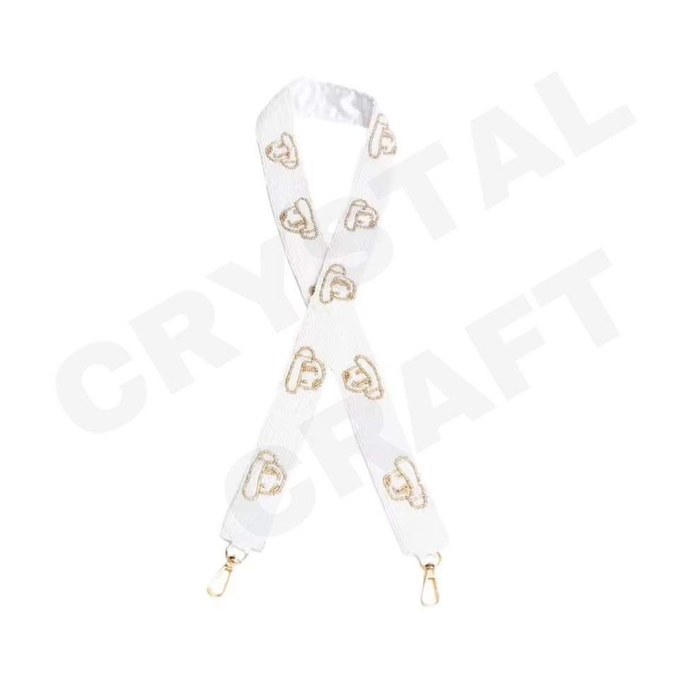 SMU Customized White Gold Seed Bead Bag Straps 'Hook Em Horns' Fashionable Accessory Beaded Purse Strap