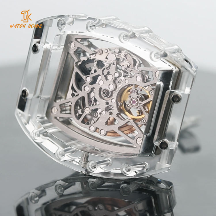 SNAYIN Custom Blank Crystal Watchescase Accessories Parts Premium Polished Transparent Tonneau 44mm Waterproof Watch Case