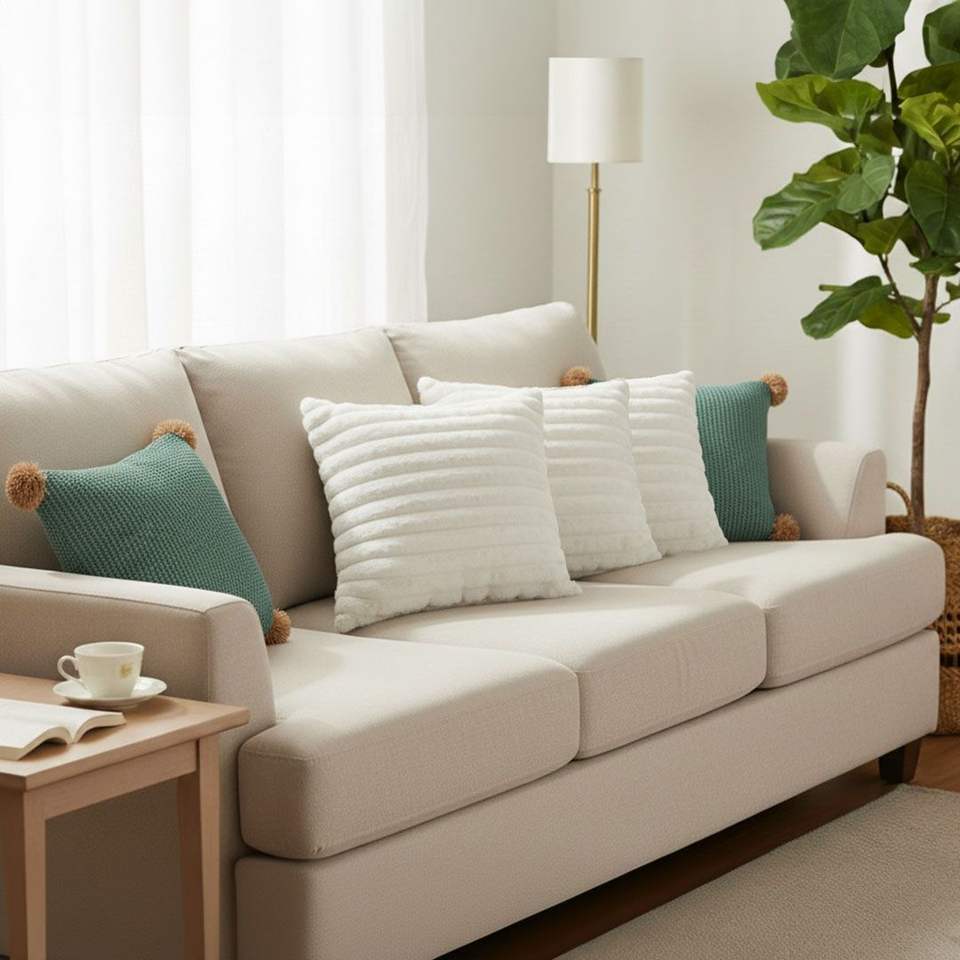 SOGA 5-Piece Decorative Pillow Set Sage Green Ribbed Pillowcase with Pom-Poms and White Textured Design Model D0100X3KDKT