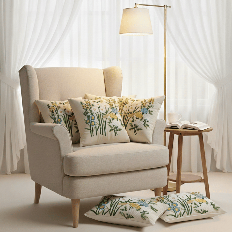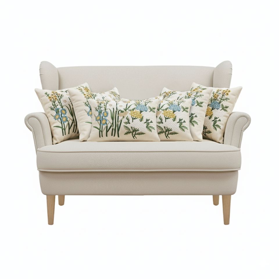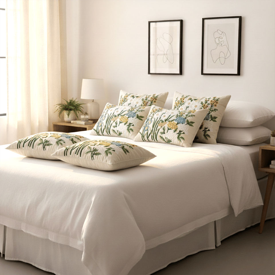 SOGA 6-Piece Botanical Garden & Meadow Green and White Pillowcase Set with 4 X 45cm and 2 X 30x50cm Cushion Covers