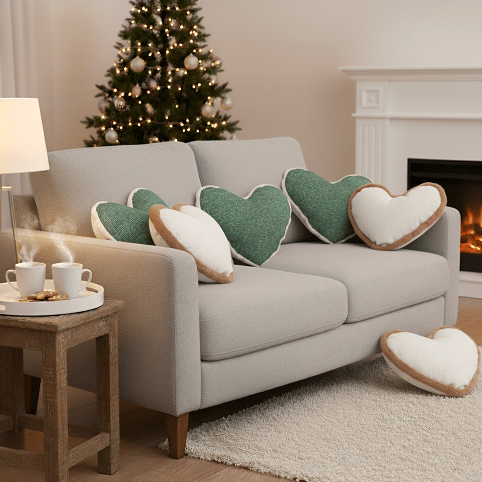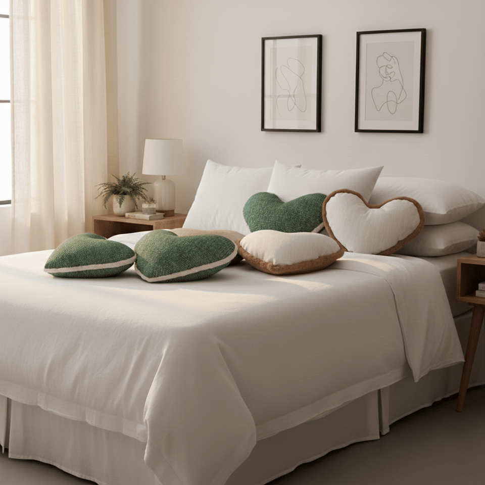 SOGA 6-Piece Green and White Heart-Shaped Cushion Cover Set 42x32cm Plush & Woven Pillows for Home Decor Sofa Bedroom