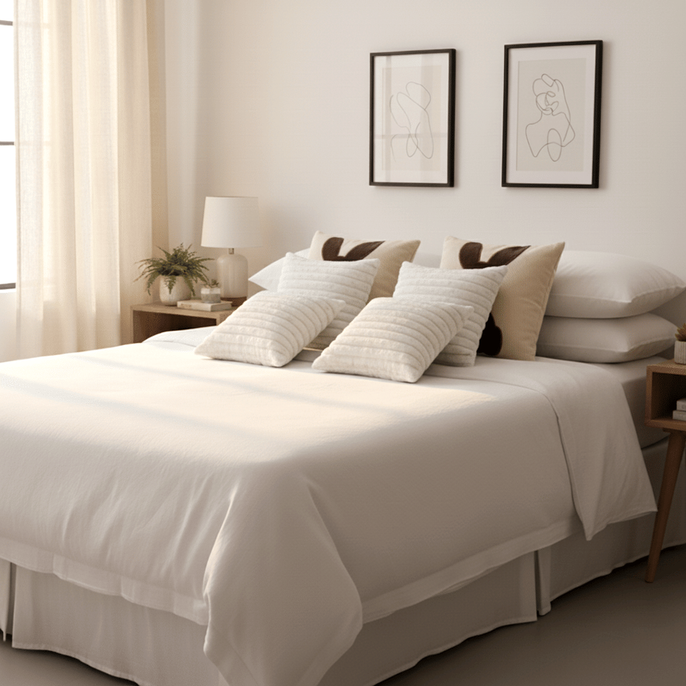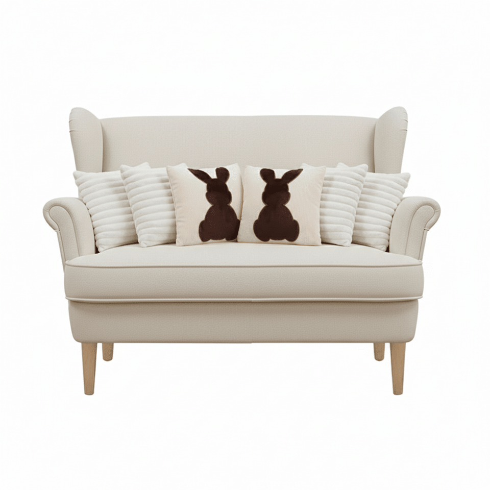 SOGA 6PC 45cm Pillowcases 2 Brown Bunny Silhouette and 4 Elegant White Textured Decorative Pillow Covers for Sofa Bedroom