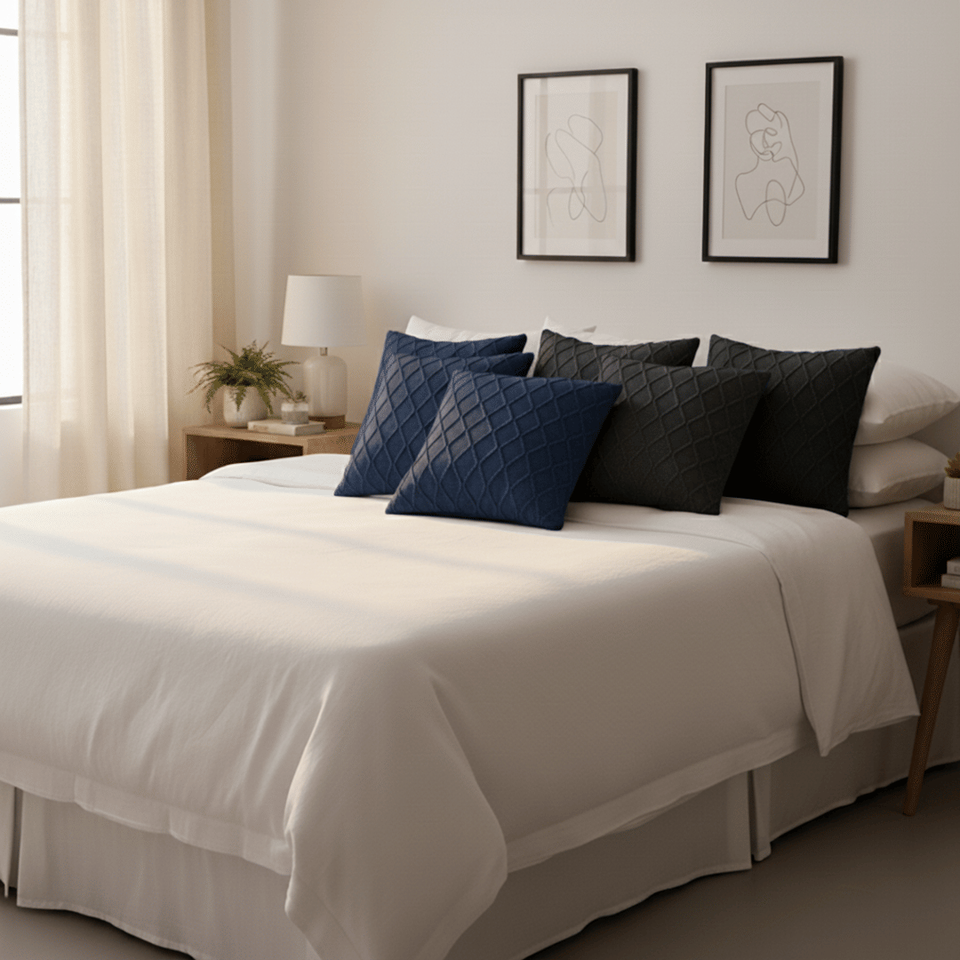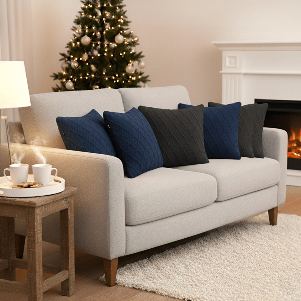 SOGA 6pc 45cm Pillow Covers Set 3 Charcoal Grey Cable Knit and 3 Navy Blue Diamond Knit for Living Room Sofas