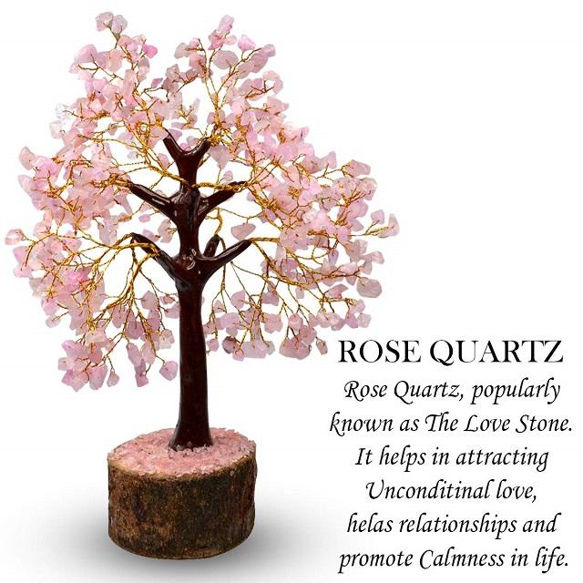 Natural Rose Quartz Crystal Money Tree / Gemstone Bonsai Tree