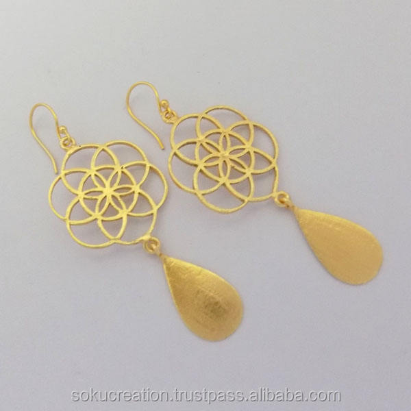 SOKU#3098 18K Gold Plated Brass Long Earrings Classic High Fashion Charm Earrings for Party Plain Chakra Design