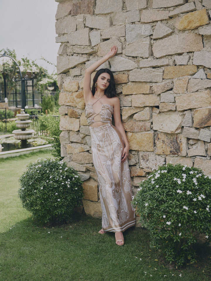 SOLARA Dress _ high quality local brand cut-out sexy dress stretchy fabric paisley design for beach party and tropical vibe