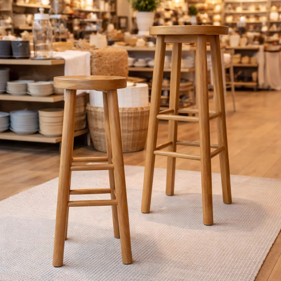 SOLOBEAT Modern Eco-Friendly Solid Teak Round Backless Bar Stool for Home Bar & Hotel Use