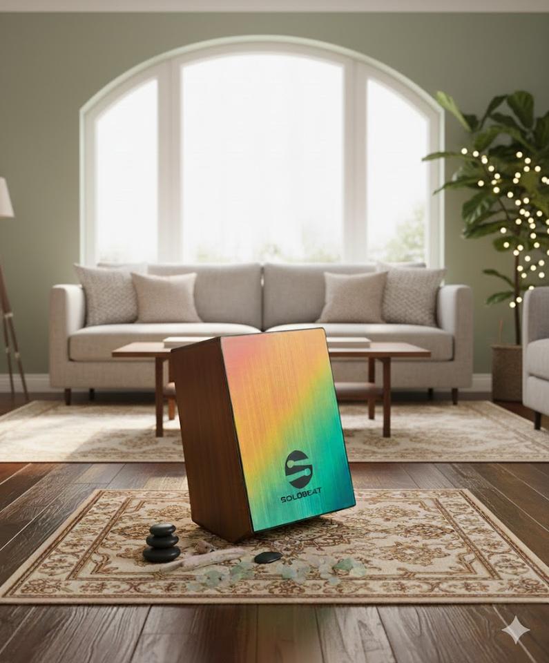 SOLOBEAT Professional Handcrafted Wooden Cajon Drum with Gradient Front Panel Acoustic Percussion Instrument Made in ID