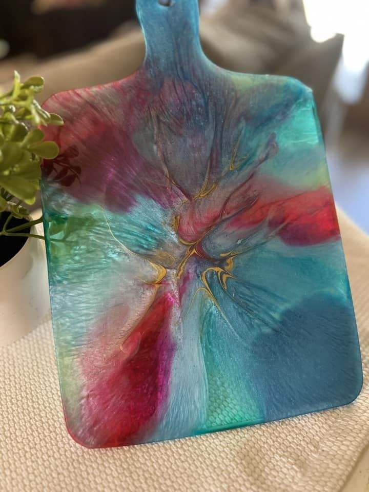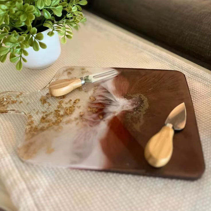SOMETHING Resin Handmade Chopping Board Cutting Board With Aqua Swirl and Marble Effect Pattern Used in Home and Hotel