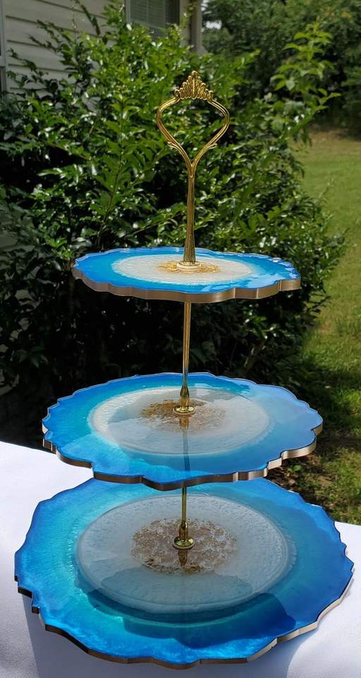 SPACE RELATED DISPLAY HANDMADE DIY 3 Tier Round Shape Fruit Tray Epoxy Mold Tea Tray Table Silicone Mold for Resin