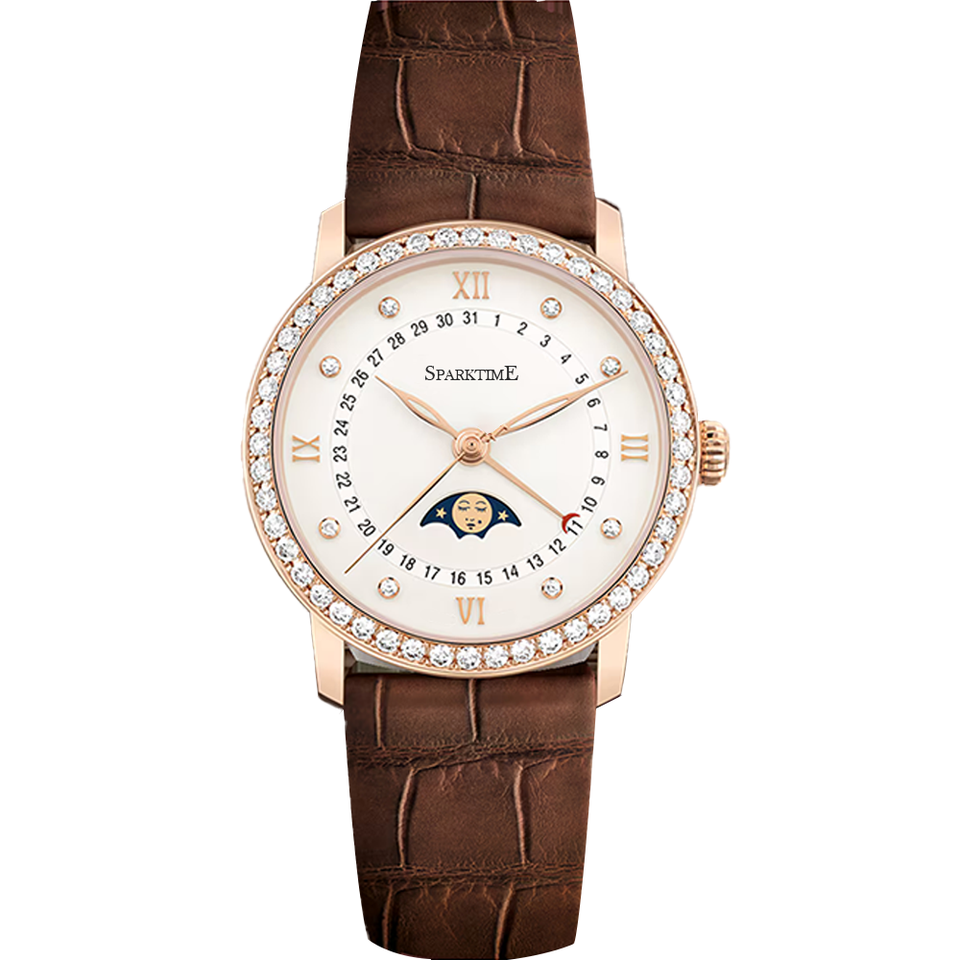 SPARKTIME Luxury Premium Leather Strap Men's Watch Water Resistant Mechanical Sapphire Crystal Moon Phase Business Fashion
