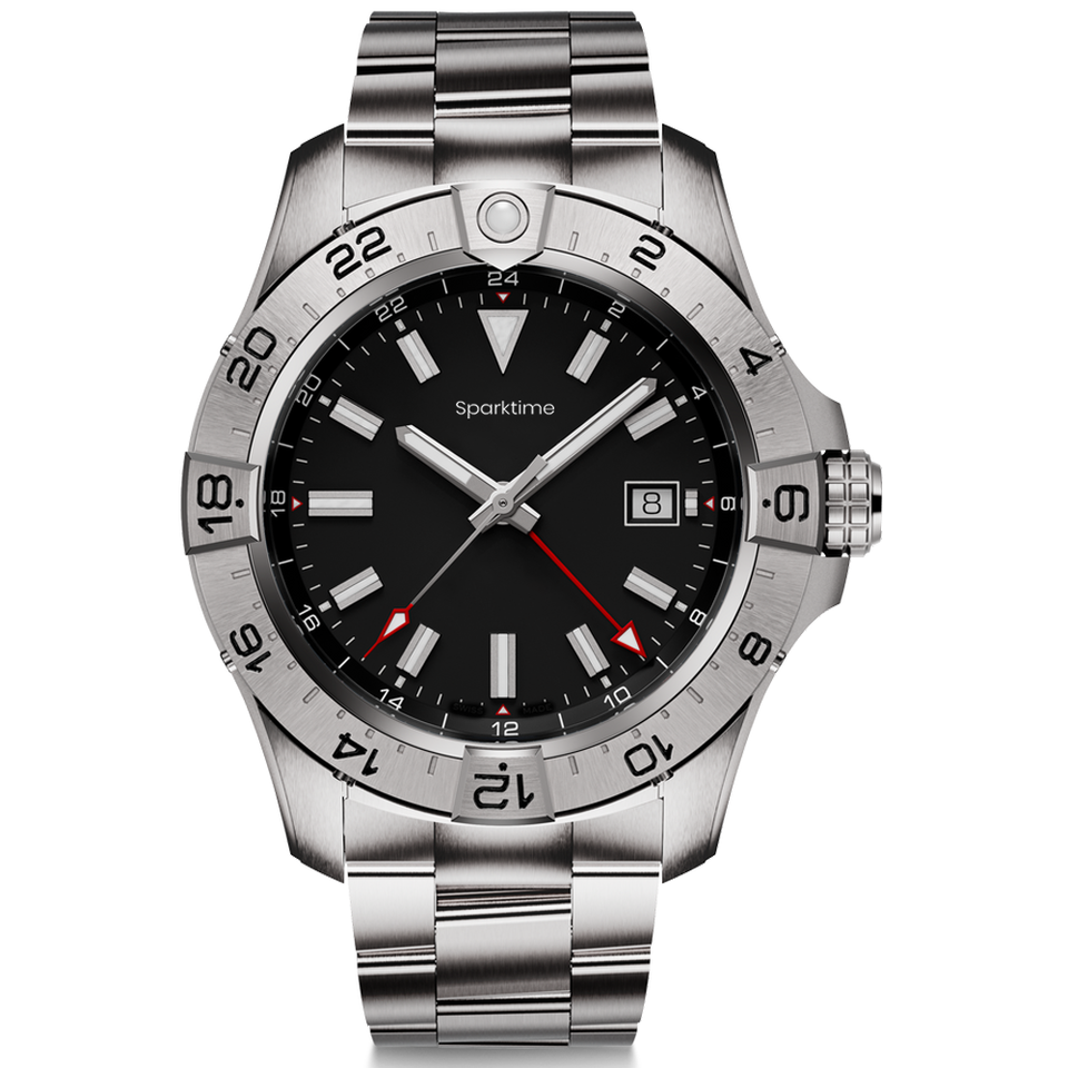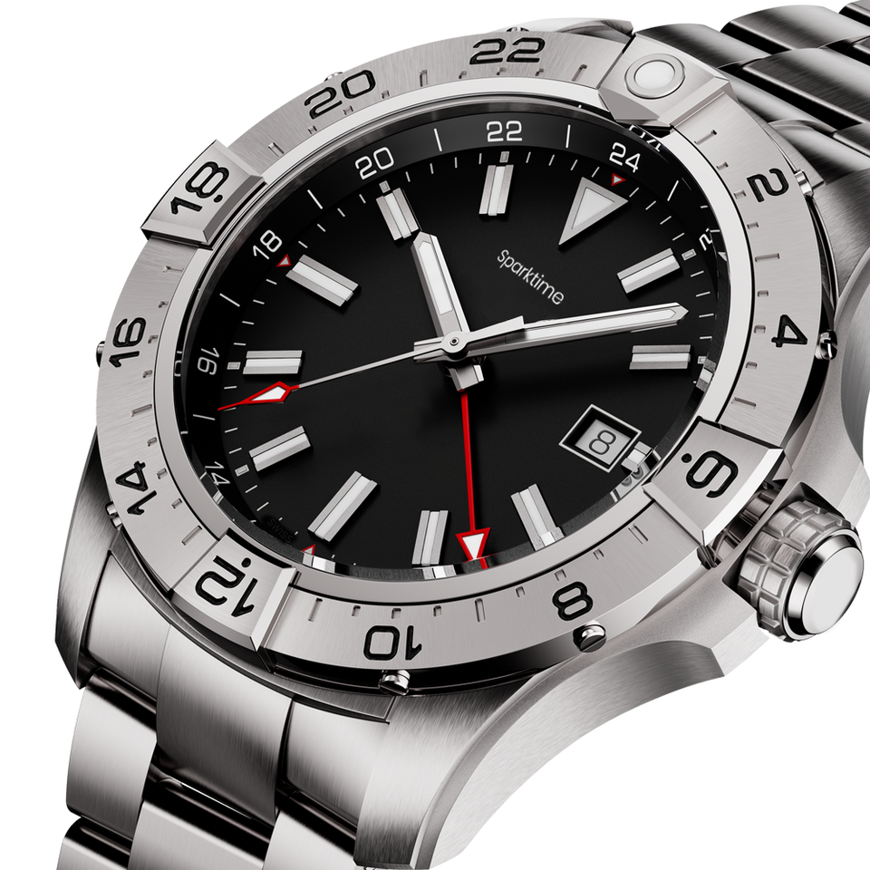 SPARKTIME Luxury Sapphire Mechanical Watch Dual timezone timepiece High Quality Men Stainless Steel Waterproof Mechanical Watch