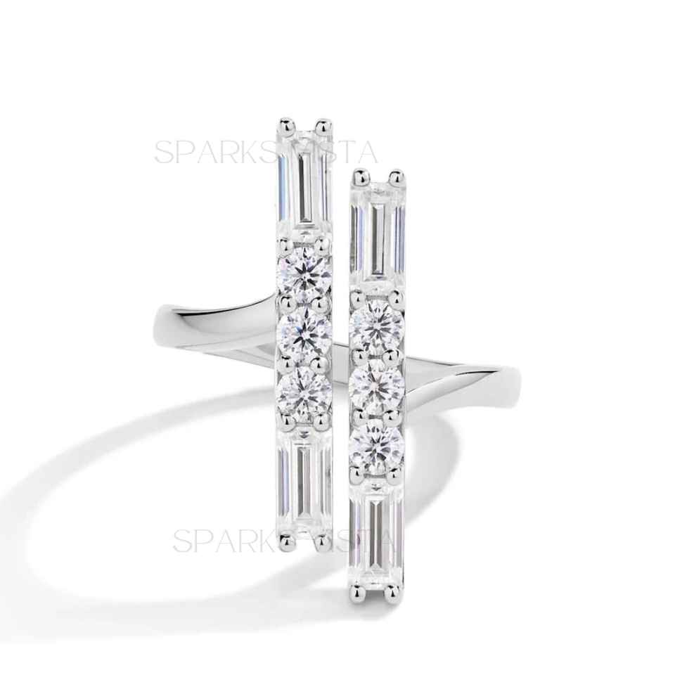 SPARKVISTA 925 Sterling Silver Cluster Ring Channel Set Romantic Fashionable Sparkling Sliver Moissanite Baguette Diamond